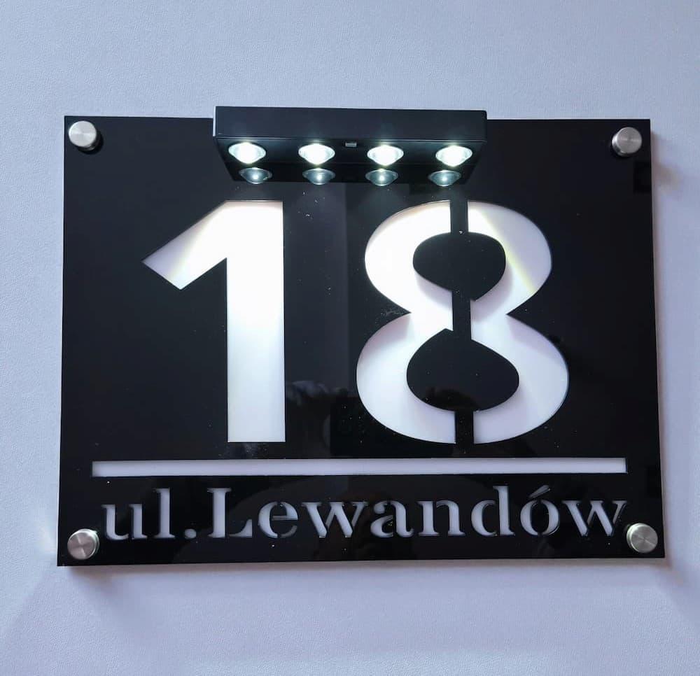 Wszystkie nasze tabliczki wykonujemy z czarnej, połyskowej plexi 3 mm, co w połączeniu z oświetleniem daje nowoczesny efekt.